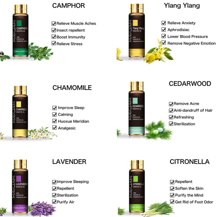 10ml Lavender Essential Oil Diffuser Pure Essential Oils Rose Eucalyptus Jasmine Vanilla Mint