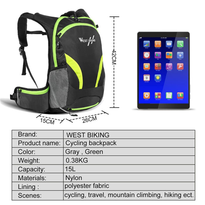 15l Breathable & Reflective Bicycle Backpack with Rain Cover