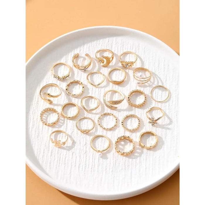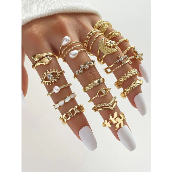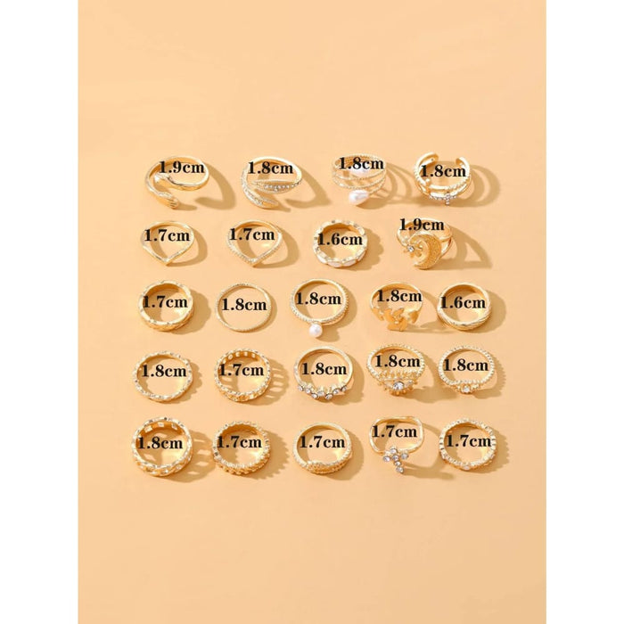 • 1 x 22 Piece Punk Cartoon Pearl Ring Set for Women Jewelry