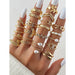 22 Piece Punk Cartoon Pearl Ring Set For Women Jewelry