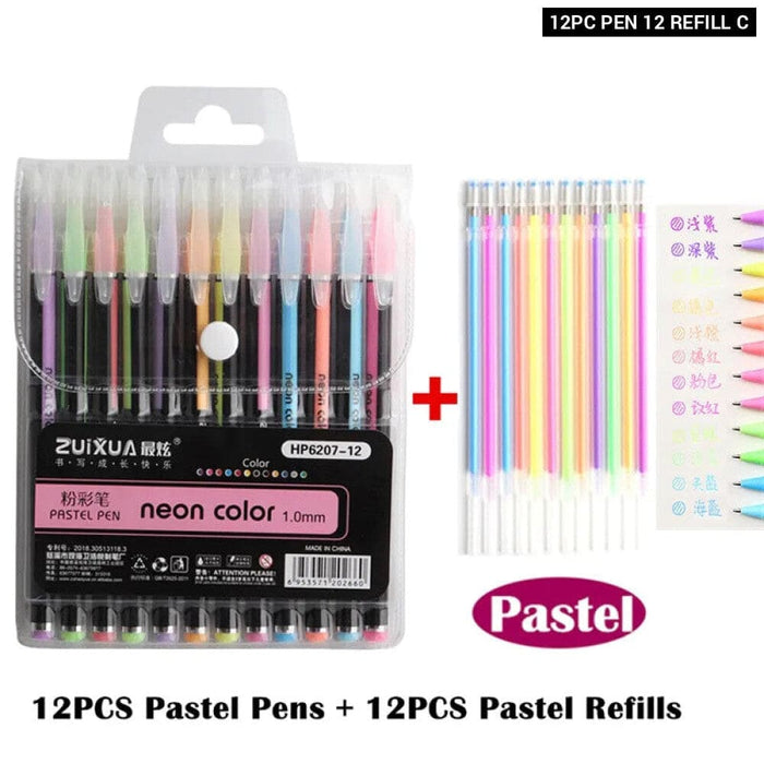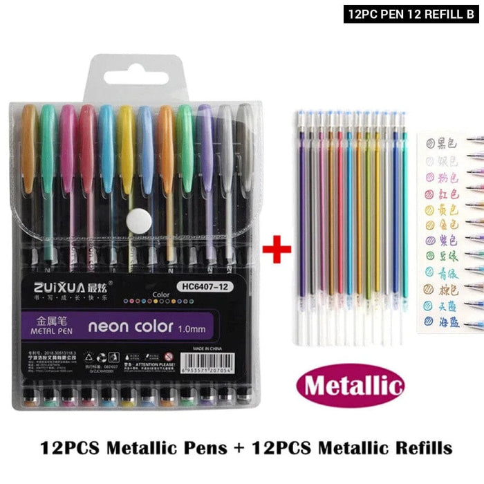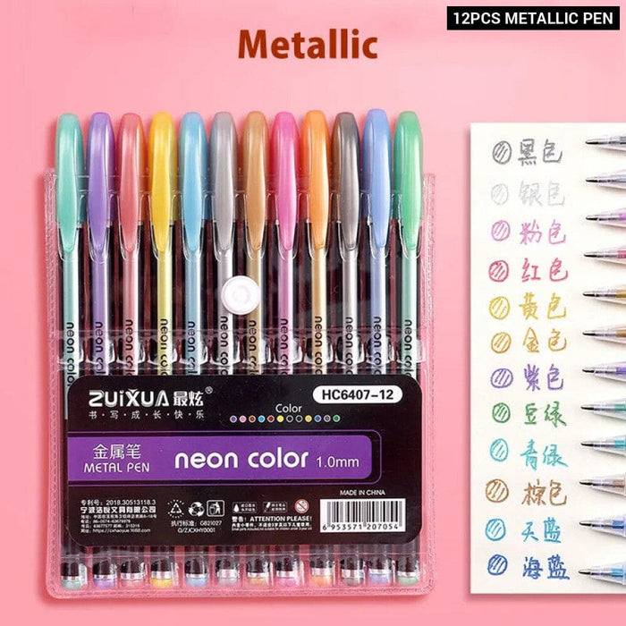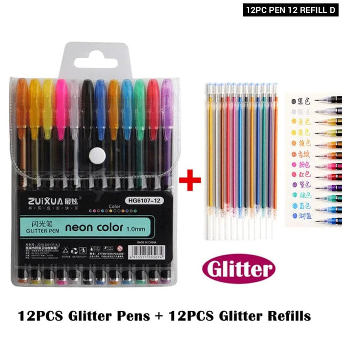 24 Glitter Gel Pens for Colouring and Drawing Metallic Colours