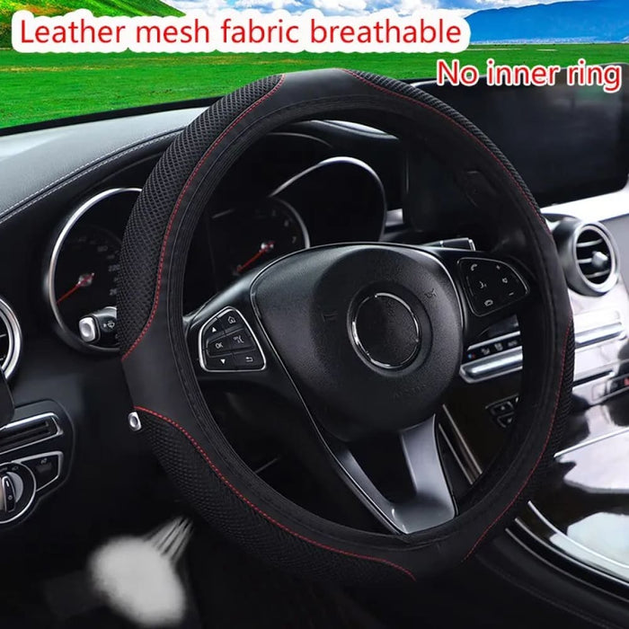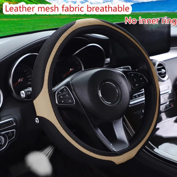 3d Leather Car Steering Wheel Cover 37 38cm Diamond Encrusted Embroidery Breathable no Inner Ring