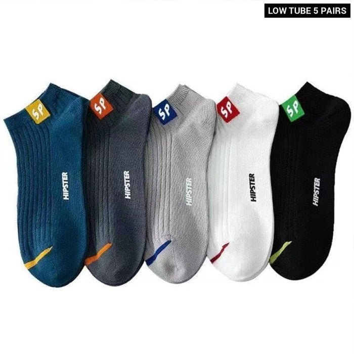 • 1 X 5 Pairs Mens Letters SP Short Socks Spring And Summer Shallow Low Top Sport Short Socks Trend In Tube Socks
