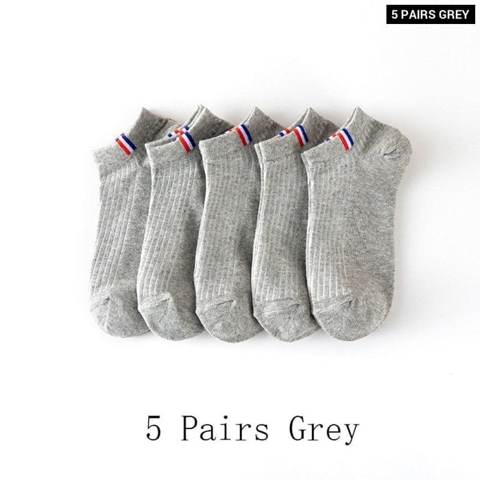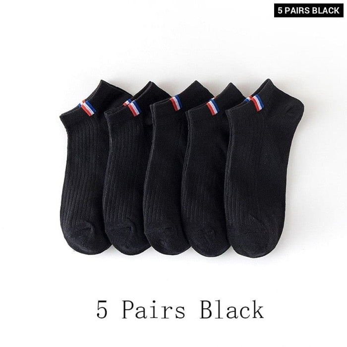5 Pairs of Thin Summer Blending Boat Socks Plain Colour Mens Casual Socks Breathable Sweat
