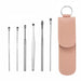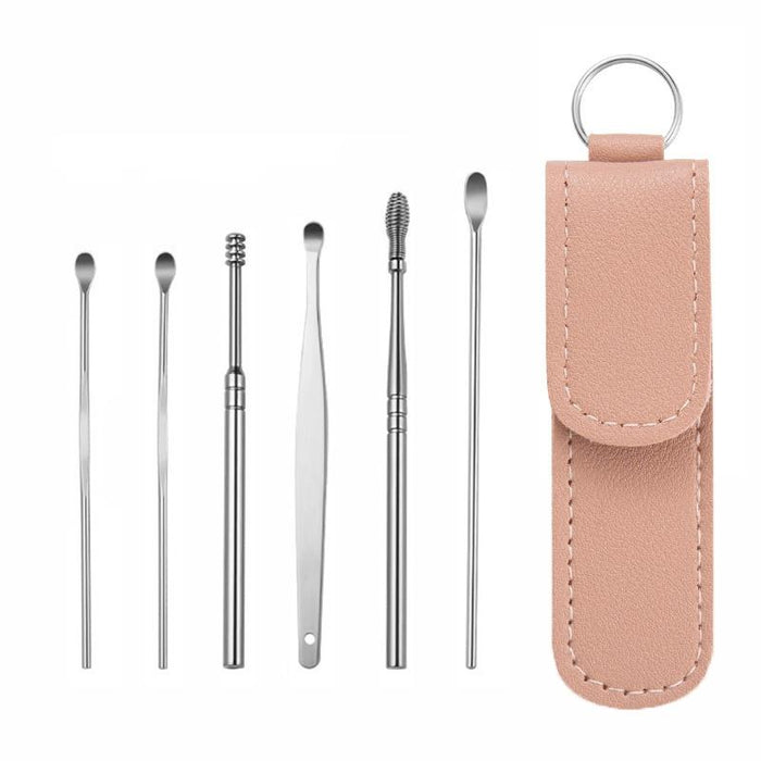 6 In 1 Portable Stainless Steel Ear Pick With Pink Leather Case
