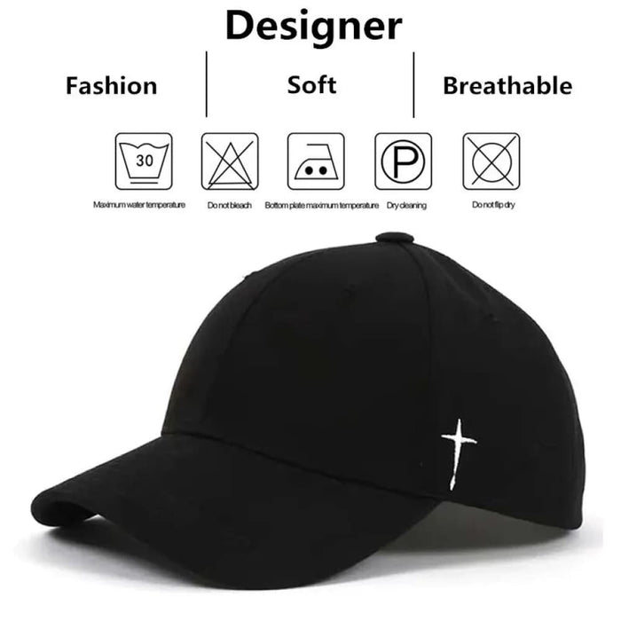 Embroidered Unisex Baseball Cap Simple Cross Water Drop Design Adjustable for Spring Autumn Outdoor
