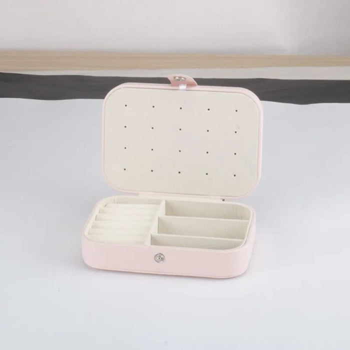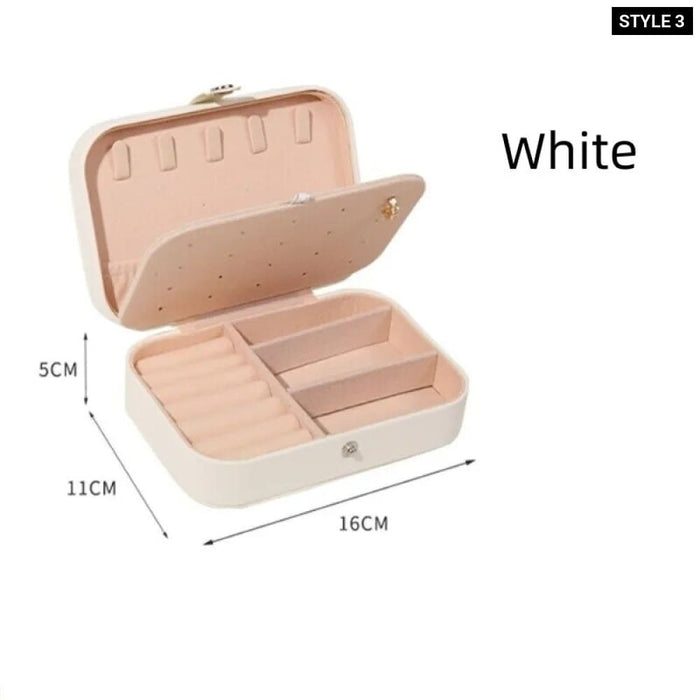 Leather Double Storage Ring Earrings Organization Zipper Box