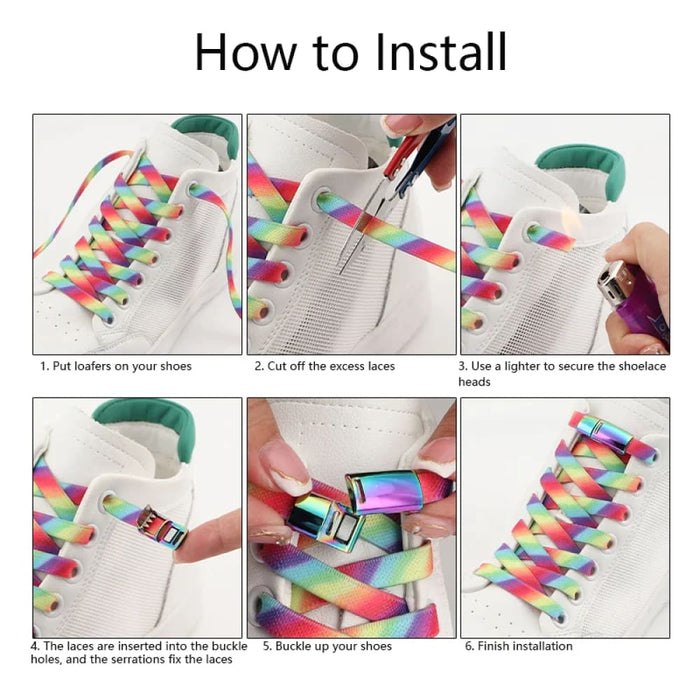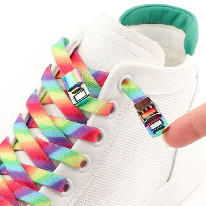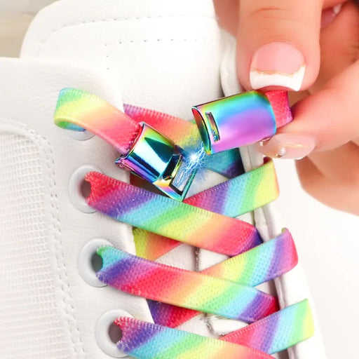 Rainbow Magnetic Lock Elastic 8mm Wide Shoe Laces for Kids & Adults Shoes