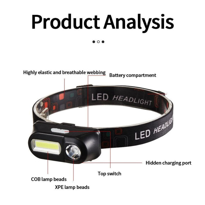 Strong Light Outdoor Head Lamp Cobled Multi Function Headlight Usb Charging Head Mounted Flashlight