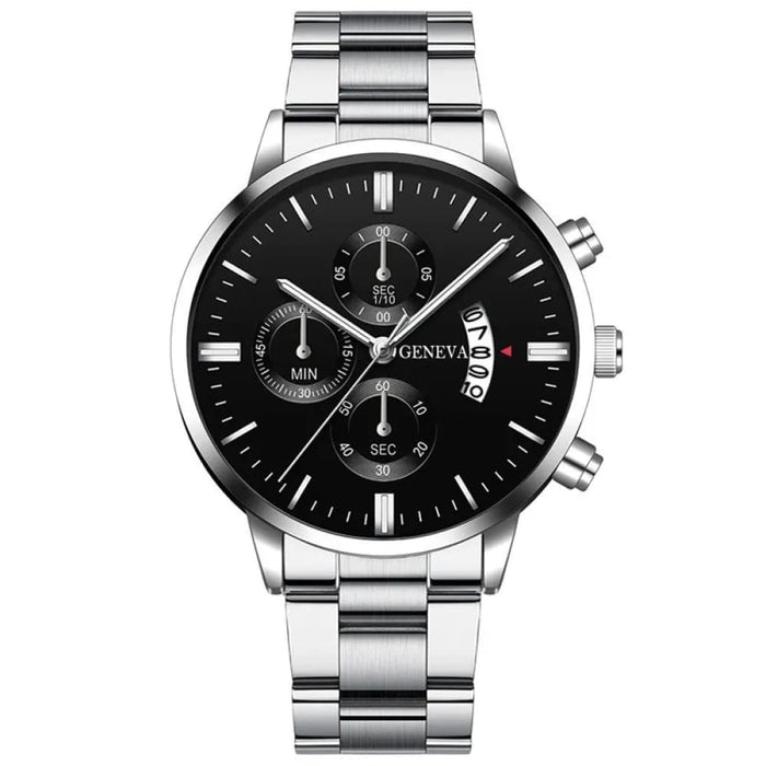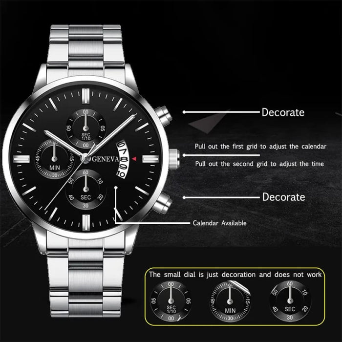 Stylish Silver Stainless Steel Quartz Wrist Watch for Men Business Calendar Clock