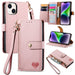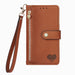 For Iphone 15 Love Zipper Lanyard Leather Phone Case