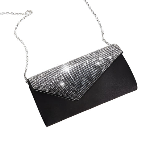 Black Rhinestone Shoulder Bag For Dinner & Cosmetics