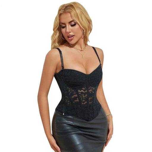 Alluring Black Mesh Corset With Removable Straps Lace-Up Design And Zipper Closure Plus Size Xs-Xxl