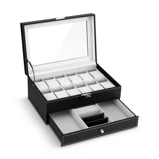 12 Grids Watch Box Organizer Case Jewelry Display Storage Showcase