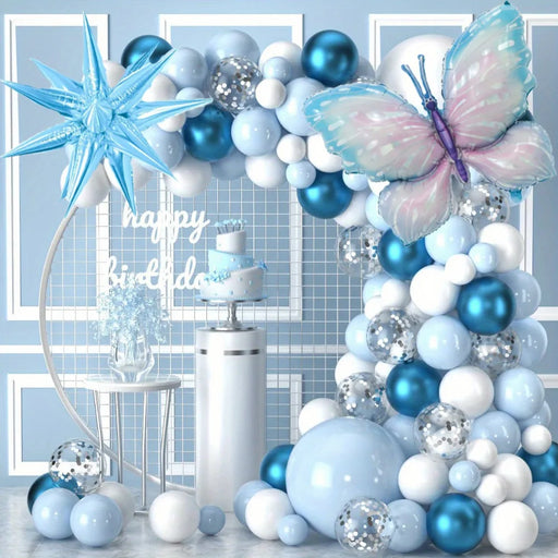 122Pcs Blue Balloon Wreath Kit With Butterfly And Exploding Star Foils - Birthdays Weddings Engagements And Anniversaries