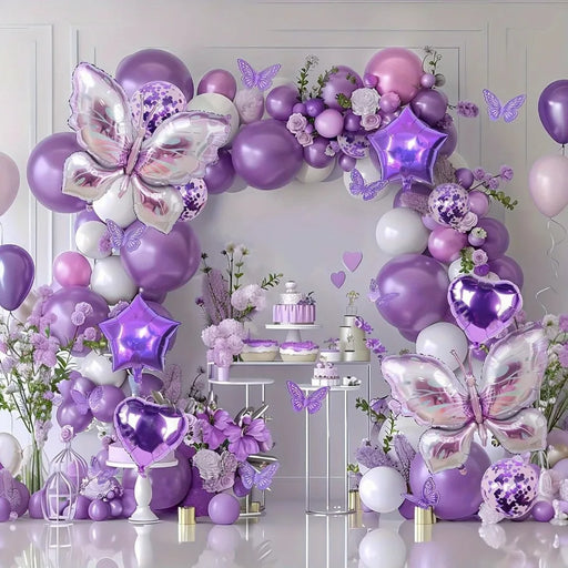 126Pcs Purple Butterfly Balloon Set Containing Butterfly Shaped Aluminum Balloons For Birthday Wedding Decoration.