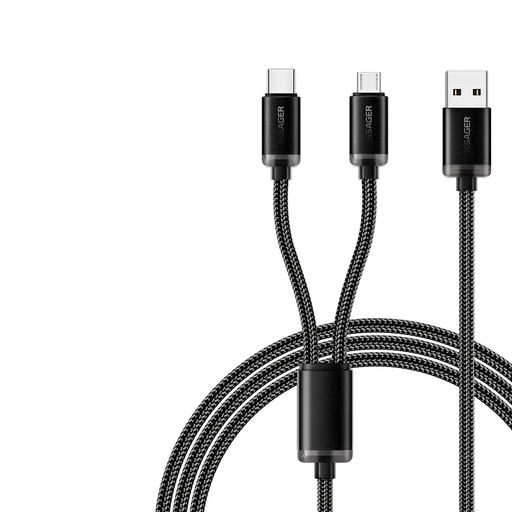 2 In 1 Usb C Cable 65W Pd Fast Charging Type C / Usb A To Micro Cable For Iphone Samsung Xiaomi Huawei Redmi Ipad Macbook