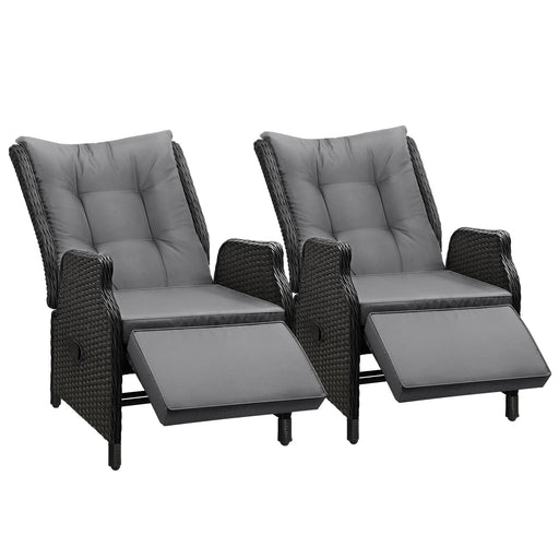 2 Pack Recliner Chairs Outdoor Sun Lounge Wicker Sofa Patio Furniture Setting