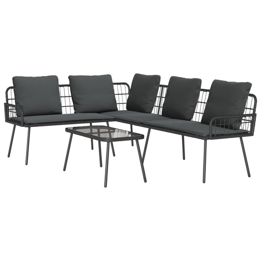 2 Piece Garden Sofa Set With Cushions Black Poly Rattan And Glass Txiiaka