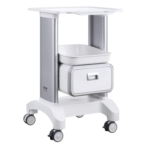 2 Tiers Lab Carts Mobile Medical Cart With 1 Drawer & 1 Top Tray White