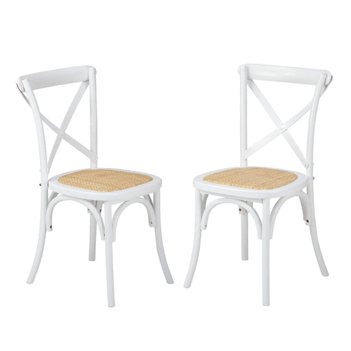2 x Crossback Dining Chair Solid Birch Timber Wood Ratan Seat White