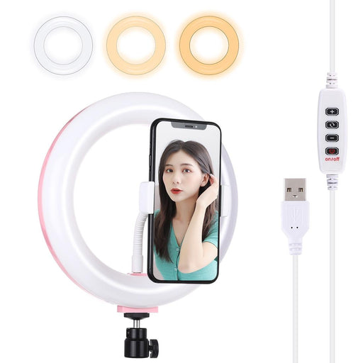 20Cm Usb 3 Modes Dimmable Dual Colour Temperature Led Curved Light Ring Vlogging Selfie Photography Video Lights With Phone Clamp