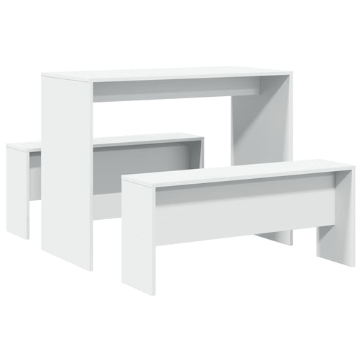 3 Piece Dining Table And Bench Set White Engineered Wood Nppptb
