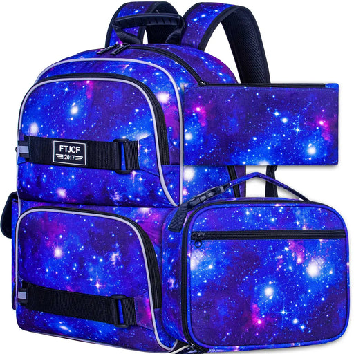 3 Piece Galaxy Backpack Set For Teens 17 Inch Laptop Water Resistant With Lunch Box