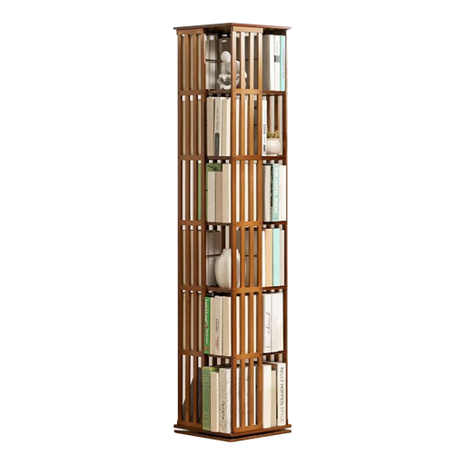 360 Rotating Bookshelf Bamboo Storage Display Rack Shelving in Dark Wood
