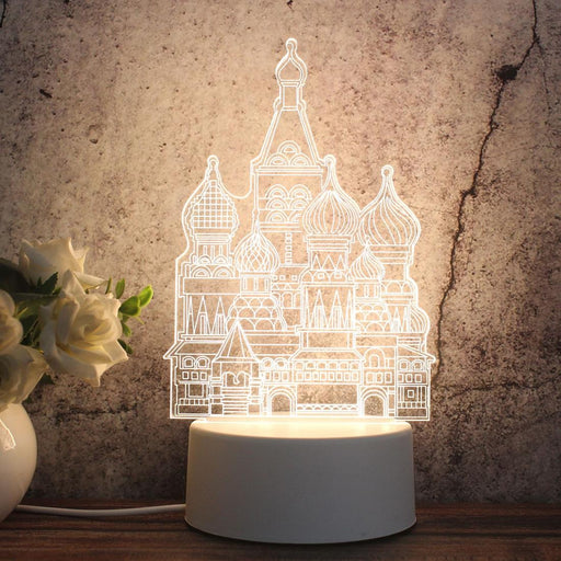 3D Tricolour Led Castle Night Light White Plug Version