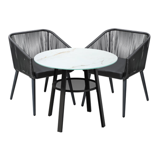 3Pcs Outdoor Dining Setting Marble-Style Table Patio Furniture Bistro Set