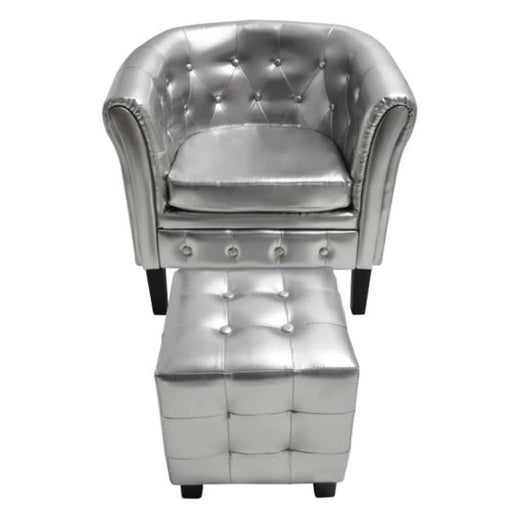 Tub Chair with Footstool Silver Faux Leather Gl89169