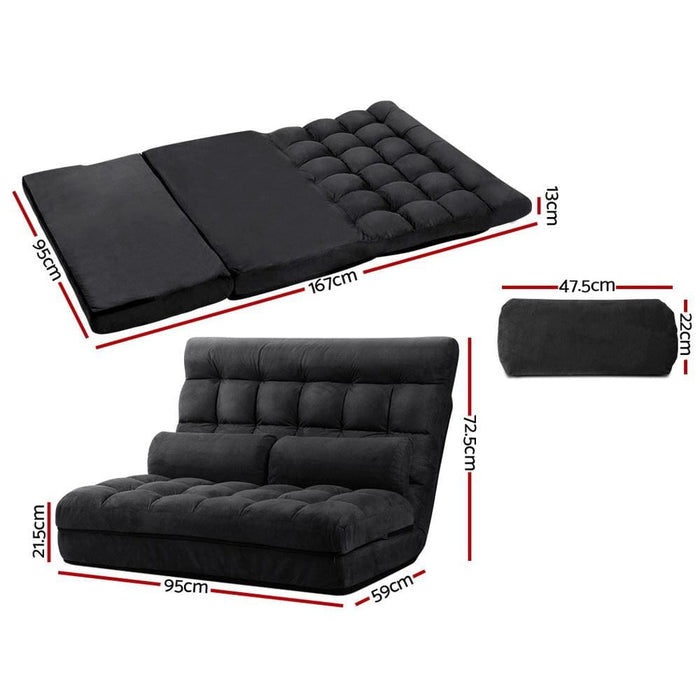 Artiss Lounge Sofa Bed Floor Folding Suede Charcoal