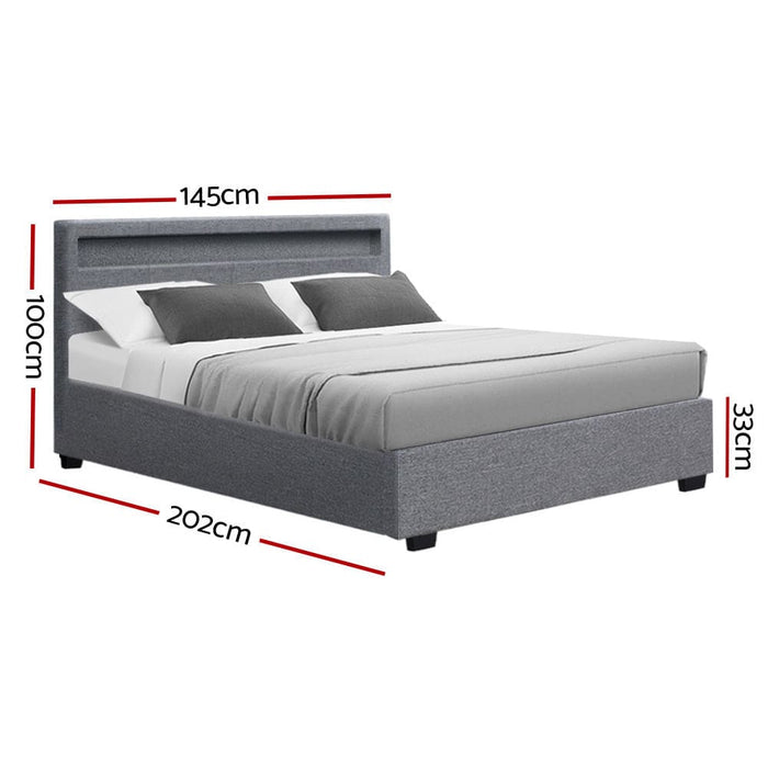 Artiss Cole Led Bed Frame Fabric Gas Lift Storage - Grey Double