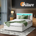 Bed Frame King Single Rgb Led Gas Lift Storage Base White