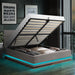 Bed Frame Double Size Rgb Led Gas Lift Storage Base Grey