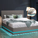 Bed Frame Queen Size Rgb Led Gas Lift Base Storage Grey