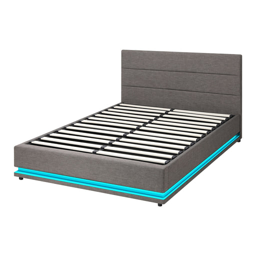 Bed Frame Queen Size Rgb Led Gas Lift Storage Base Grey