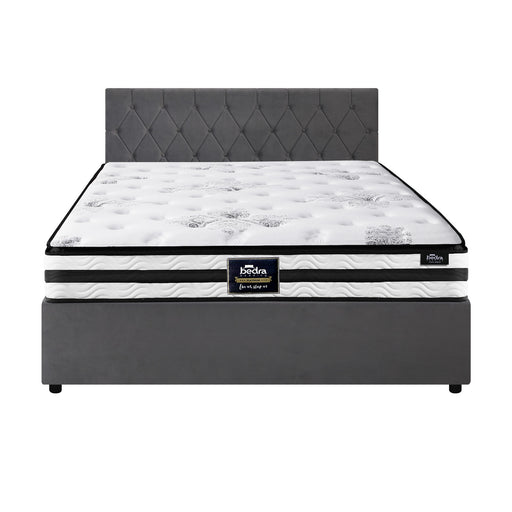 Bed Frame Queen Size Gas Lift Base With Mattress Velvet Grey