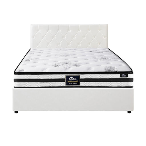Bed Frame Double Size Gas Lift Base With Mattress White Leather