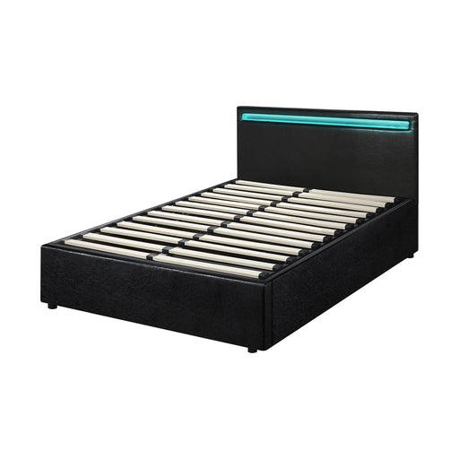 Bed Frame Queen Size Rgb Led Gas Lift Base Storage Black