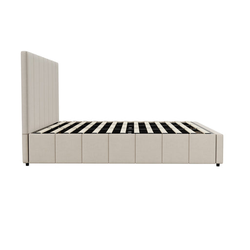 Bed Frame King Size Gas Lift Base With Storage Beige Fabric
