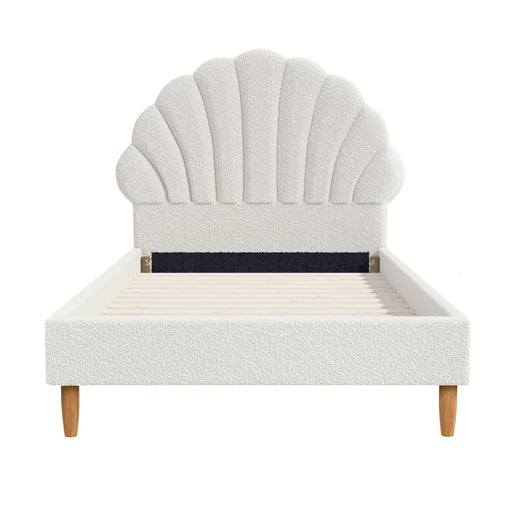 Bed Frame Single Size Scallop-Shape Bedhead White Boucle With Mattress