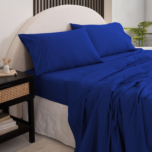 Double Size Vintage Washed 100 % Cotton Sheet Set - Royal Blue