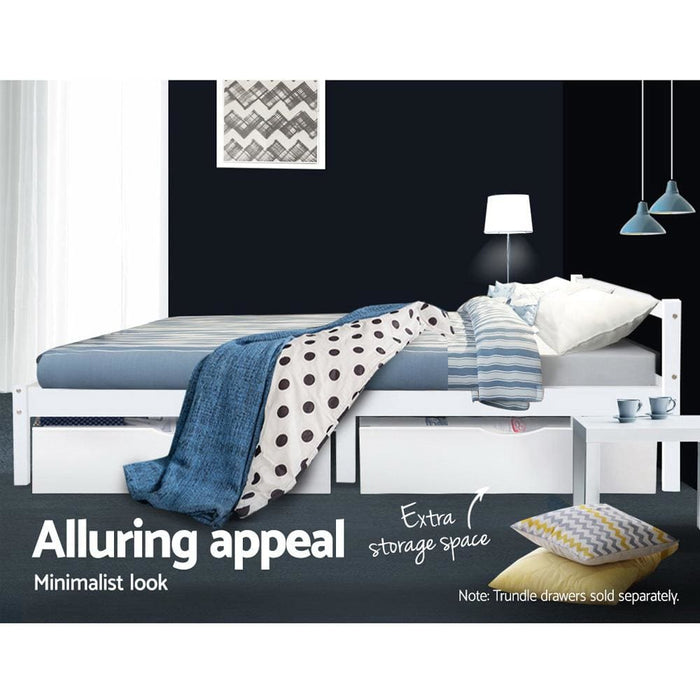 Artiss Single Size Wooden Bed Frame Mattress Base Timber Platform White