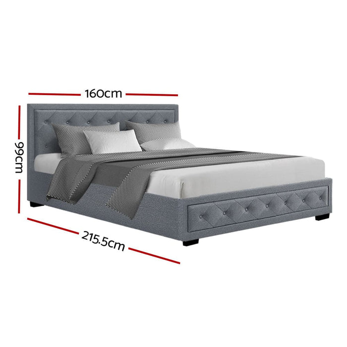Artiss Tiyo Bed Frame Fabric Gas Lift Storage - Grey Queen