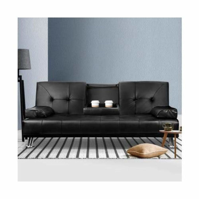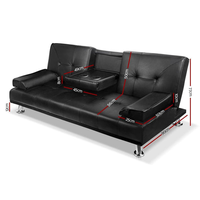 Artiss 3 Seater Pu Leather Sofa Bed - Black