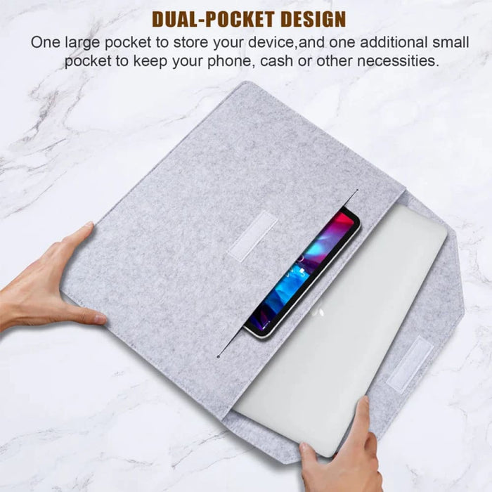 • Dual-pocket design with one large pocket for device and one small pocket for phone, cash, or other necessities.