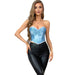 Blue Sequined Zip-Up Corset Plus Size S-Xxl 12 Fish Bone Strapless Summer Cropped Top