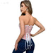 Floral Jacquard Lace Up Boned Victorian Corset With Beading And Tassel Detail Adjustable Hook And Eye Closure
